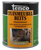 Verkrijgbaar in de volgende kleuren* kleuren zijn slechts een indicatie | | Tenco TuinmeubelbeitsTenco Tuinmeubelbeits is een watergedragen transparante beits speciaal voor zachte en hardhouten tuinmeubelen. Geeft een natuurlijke kleur aan het hout en biedt een zijdeglanzende beschermlaag. Tenco Tuinmeubelbeits voorkomt vergrijzing van het hout en is niet filmvormend waardoor het niet kan bladderen of barsten. Algemene eigenschappen| Inhoud