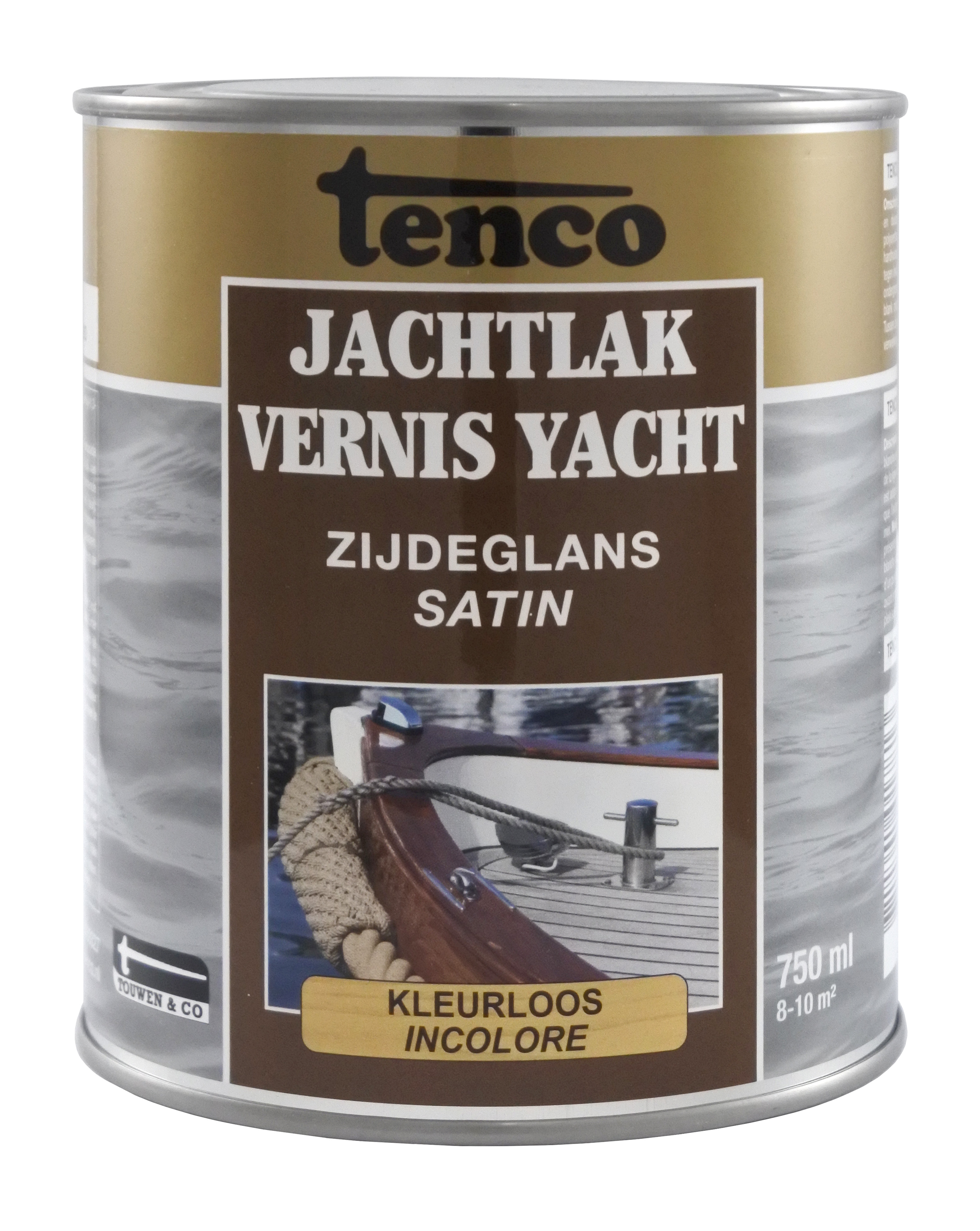 | Tenco Jachtlak blank zijdeglans Tenco Jachtlak blank zijdeglans is een sneldrogende en krasvaste blanke lak op basis van alkyd-polyurethaanharsen. Toepasbaar op alle hardhoutsoorten boven de waterlijn. Tenco Jachtlak blank zijdeglans is bestand tegen alle weersinvloeden tevens bestand tegen zoet en zout water. Ook is Tenco Jachtlak blank binnen te gebruiken als blanke lak voor scheepsinterieurs, meubels, deuren en kozijnen. |